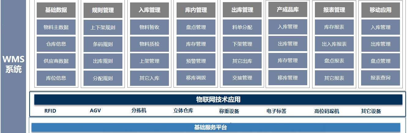 WMS是倉庫管理系統(tǒng)(Warehouse Management System) 的縮寫,倉庫管理系統(tǒng)是通過入庫業(yè)務(wù)、出庫業(yè)務(wù)、倉庫調(diào)撥、庫存調(diào)撥和虛倉管理等功能,對批次管理、物料對應(yīng)、庫存盤點、質(zhì)檢管理、虛倉管理和即時庫存管理等功能綜合運用的管理系統(tǒng),有效控制并跟蹤倉庫業(yè)務(wù)的物流和成本管理全過程,實現(xiàn)或完善企業(yè)的倉儲信息管理。該系統(tǒng)可以獨立執(zhí)行庫存操作,也可與其他系統(tǒng)的單據(jù)和憑證等結(jié)合使用,可為企業(yè)提供更為完整企業(yè)物流管理流程和財務(wù)管理信息。